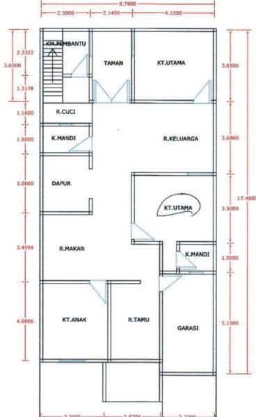 • Keliling pondasi (panjang sloof) = (6m + 12m) x 2 = 36 meter linear.